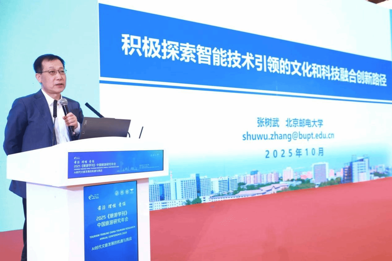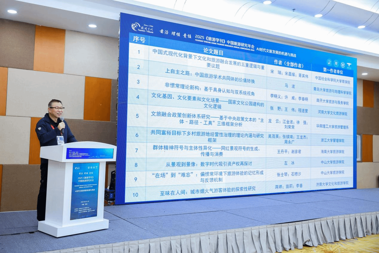 、《旅游学刊》编辑部承办。会议以“AI时代文旅发展的机遇与挑战”主题,聚焦AI赋能下的旅游研究范式转型、文旅产业变革、消费行为演化、教育体系重构等议题,系统呈现了当前中国旅游研究的前沿动态与未来趋势,为构建具有中国特色的旅游学科体系和推动文旅高质量发展提供了重要智力支持。